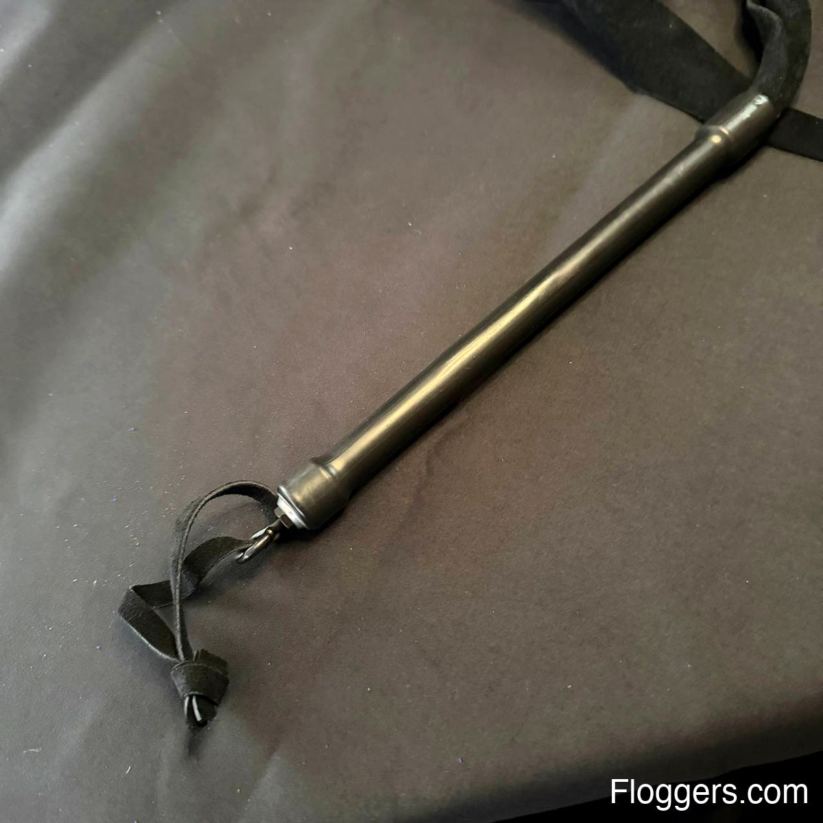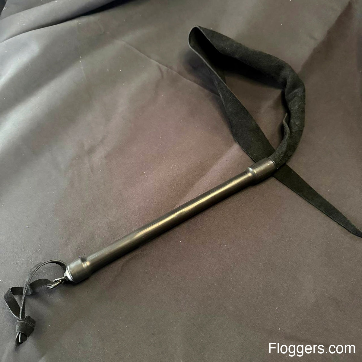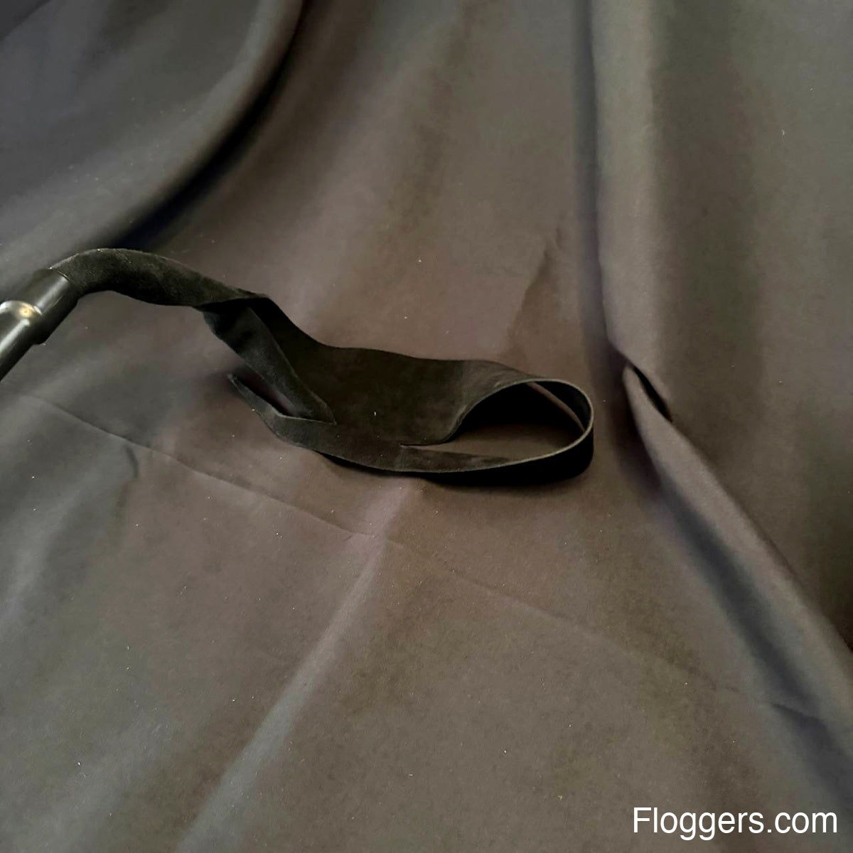A striking black dragon tail flogger with a medium-length handle. Dragon tails feature multiple tassels that create a dramatic visual presence and intense impact sensation.